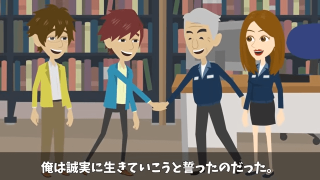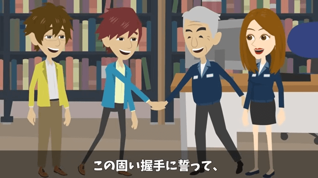 主人公は笑顔で上司と固い握手を交わします。 そして主人公は、この握手に誓ってこれからも誠実に生きていこうと思うのでした。
