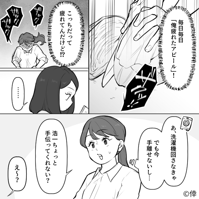 週5でスーパーのパートをしている主人公には、ある悩みがありました。 夫が毎日のように疲れたアピールをして、一切家事に協力してくれず…。
