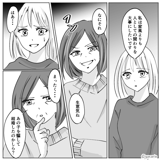 今回は『嘘つき浮気夫を“3人で撃退”した話』を紹介します。 アポなしで家にやってきては、主人公にイヤミを言う義母。 そんな義母の嫁いびりに、主人公は悩まされていて…。