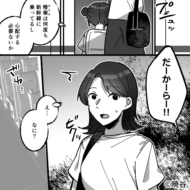 今回は『帰省中、迷惑すぎる人たちに遭遇した話』を紹介します。 娘と2人で実家に帰省したときのこと。 主人公たちが新幹線に乗り込むと…。