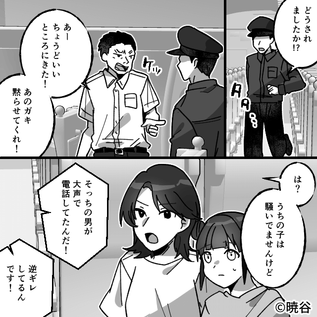 周囲の乗客に口々に注意されたことに腹を立て「お前のせいだ!」と娘を指差した男性。 しかしその行動によってさらに周りに責められ、男性は激怒します。