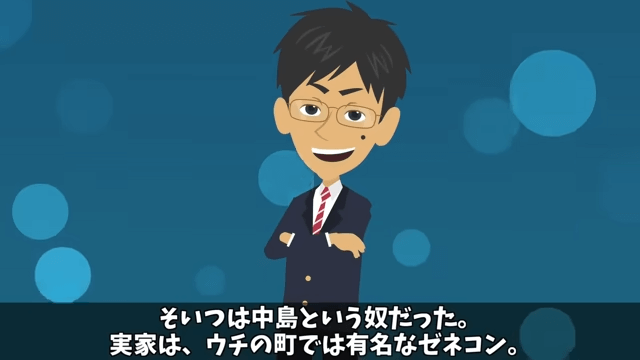 同窓会の案内状を受け取った主人公は、気に食わない同級生を思い出して絶望します。 その同級生の実家は有名なゼネコンで、同級生の父が社長だったため、同級生は後を継ぐ予定でした。