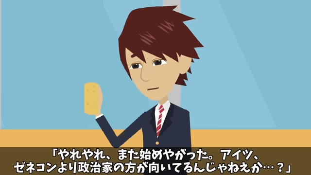 同級生はことあるごとに、自分がどれだけ偉いのかを力説しました。 それを聞いていた主人公は「ゼネコンより政治家のほうが向いてるんじゃねえか…?」とぼやきます。