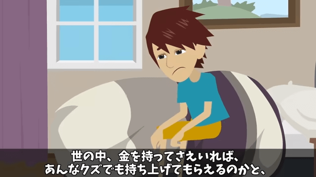 そして主人公は、お金があればどんな人間でも持ち上げてもらえることに失望したのです。