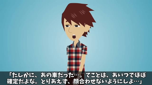 主人公が駅から会場に向かって歩いていると、黒塗りの高級車が追い抜いていきました。 その高級車に既視感があった主人公は、同級生が同窓会に来ることを確信します。