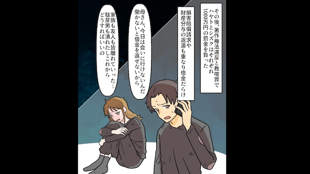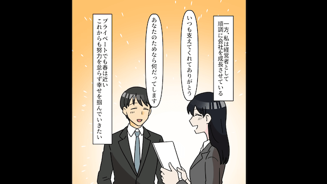多額の支払いが待っていることに気づいた夫と秘書は、主人公にすがってきました。 しかし主人公は冷たく突き放し、夫と秘書は借金だらけになったのです。