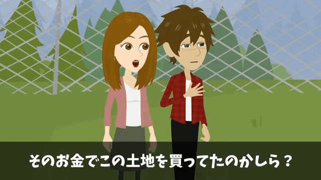 相続した土地を見に行った主人公は「えっ!こ、こんな広い場所なのか…!」と驚きます。 すると妻は、叔父は株で儲けていたからそのお金で買ったのかもしれないと言いました。