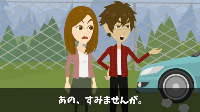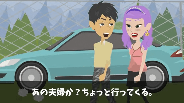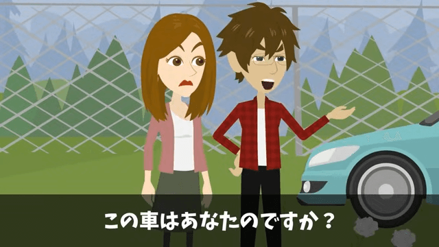 主人公たちは、とにかく車の所有者が誰なのか突き止めることにします。 すると車に向かって夫婦が歩いてきたため、主人公は「この車はあなたのですか?」と尋ねました。