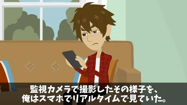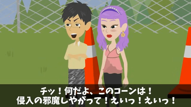 男性は「チッ!何だよ、このコーンは!侵入の邪魔しやがって!えいっ!えいっ!」と言って入口にあったコーンをどかします。 そして主人公はその様子をリアルタイムで確認し、腹を立てていました。