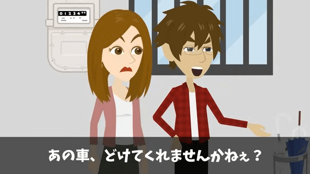 陸運局に資料を提出した主人公は、男性の名前と住所を知ることができました。 そして、さっそく男性の家を訪れ「あの車、どけてくれませんかねぇ?」と伝えます。