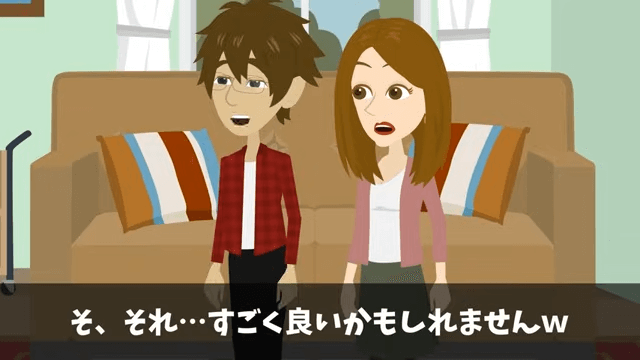 いいアイデアを思いついた女性社員は、主人公たちにそれを伝えます。 すると主人公は「そ、それ…すごくいいかもしれません」と感心し、妻は土地を売ることを決めました。