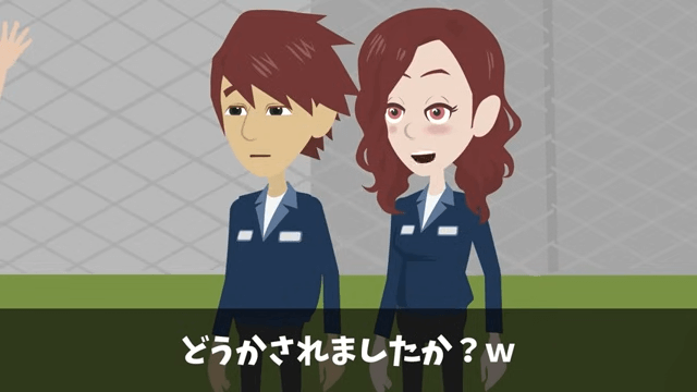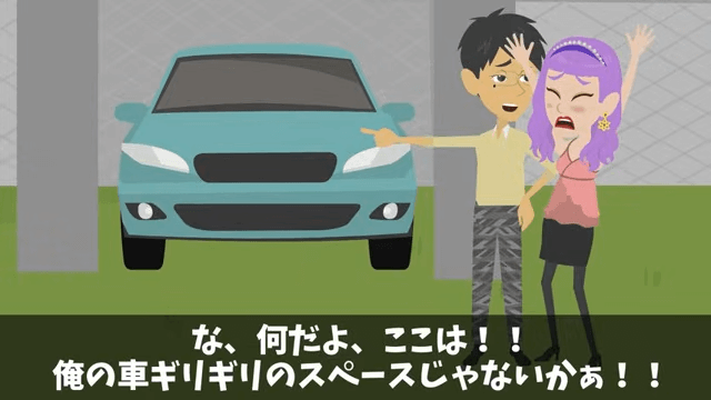 車が壁と天井に囲われていることに気づいた男性は「な、何だよ、ここは!俺の車ギリギリのスペースじゃないかぁ!」と言いました。 すると男性社員が「ここは、ちょうどマンションの自転車置き場になるスペースでして」と説明します。
