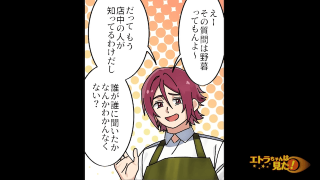 今回は『職場で悪い噂を流すお局の末路』を紹介します。 バイト先の先輩に「あの話聞いた〜?」と話しかけられた主人公。 先輩は、店長と女性社員が恋愛関係にあるという噂を聞いたようで…。