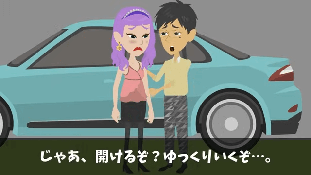 建物の壁が傷つかないように車の扉を押さえておくよう女性に指示した男性。 しかし女性が扉を開けるとガリガリと壁にぶつかってしまい…。