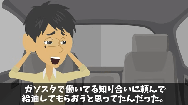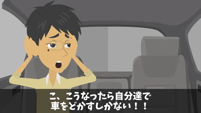 エンジンをかけようとした男性は、ガソリンがないことに気づきます。 すると男性は「こ、こうなったら自分たちで車をどかすしかない!」と言いました。