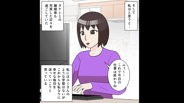 義妹は夫の家に居候することになり、毎日ケンカをして過ごしているようです。 一方、主人公は離婚後も充実した日々を送り、これからも明るい未来を生きていくのでした。