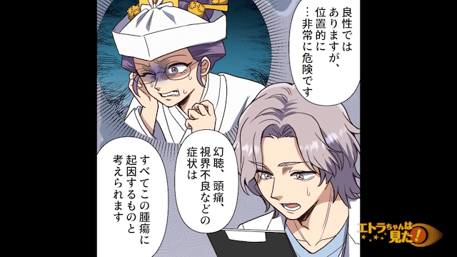 主人公たちが慌てて病室に駆けつけると、戸惑っている様子の友人がいました。 すると医者がやってきて、友人の脳に腫瘍が見つかったと言ってきたのです。