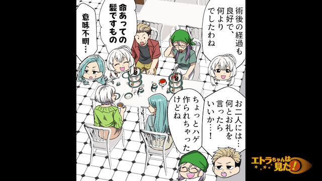 主人公は参列者たちに事情を説明し、友人宛てに寄せ書きを書いてもらいました。 そして数週間後、主人公は退院した友人と食事をすることになったのです。