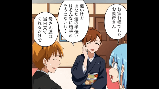 義母が頑張ってくれたおかげで、義妹の結婚式は滞りなく行われました。 そして主人公たちは、十分な準備期間を経て着々と結婚式の用意を進めていきます。