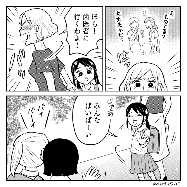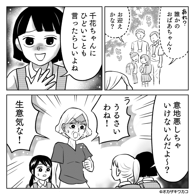 義母が娘を迎えに行くと、娘の友人たちが集まってきます。 友人たちは義母がリモコンを奪ったことを知っていて、義母に「意地悪しちゃいけないんだよ〜?」と注意。