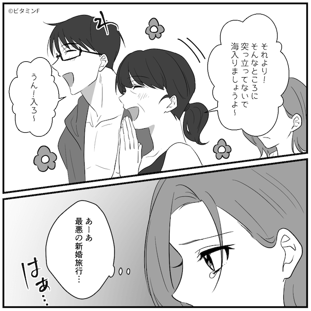 今回は『結婚式で義母がした“信じられないサプライズ”』を紹介します。 結婚式から半年後、夫と一緒に海に来ていた主人公。 しかし夫が勝手に義母を呼んでしまい、主人公は我慢の限界を感じたのでした。