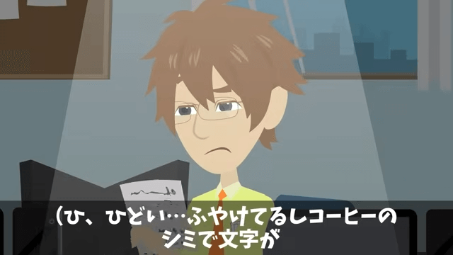 今回は『元上司「社員旅行100人分キャンセルで(笑)」俺「はーい」→そのまま放置した結果』を紹介します。 元上司は主人公の企画書をわざと落とし、その上にコーヒーをこぼしました。 そして元上司は「あーあ、俺、疲れてるのかなあー」と言い…。