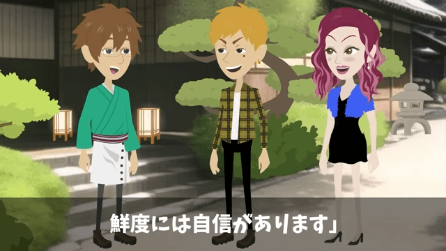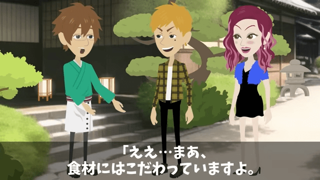元上司は主人公の高級旅館の料理が評判だと知り合いから聞いたと言います。 そこで主人公は、食材にこだわっていることを元上司に説明しました。