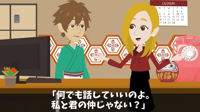 主人公が貸し切りにすると費用が高額になることを伝えると、社長は全額前払いするから問題ないと答えました。 しかしそれでも主人公の表情が曇っているため、社長は「…なんだかまだ浮かない顔ね。何か心配事でもあるの?」と尋ねます。