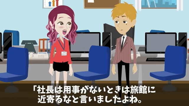 元上司は社長から釘を刺されているため、勝手な行動はできないと言います。 すると元同僚は、用事があれば主人公の高級旅館に行っても構わないはずだと言い出し…。