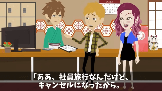 用事があるから仕方なく来たと話す元上司に、主人公は「それで、話というのは?」と尋ねました。 すると元上司は、社員旅行がキャンセルになったと主人公に告げたのです。