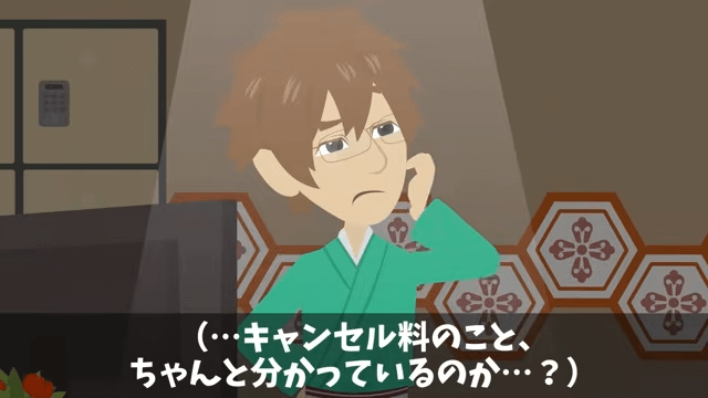 元上司は「じゃあな、もう二度と来ねえよ!」と言い捨てると、その場を去っていきました。 そして元上司たちが去った後、主人公は「キャンセル料のこと、ちゃんとわかっているのか…?」と考えます。