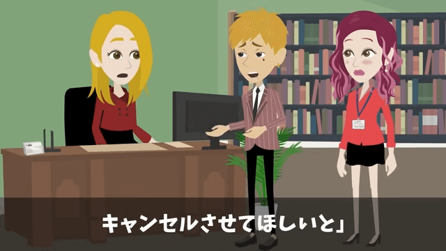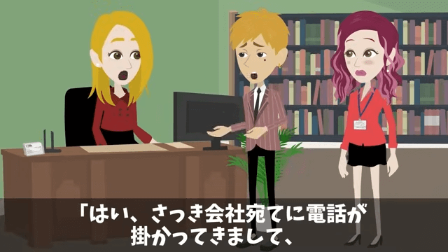 元上司は社長に、主人公からキャンセルの電話がかかってきたことを報告します。 それを聞いた社長は、本当に主人公がそう言ったのかと元上司に確認しました。