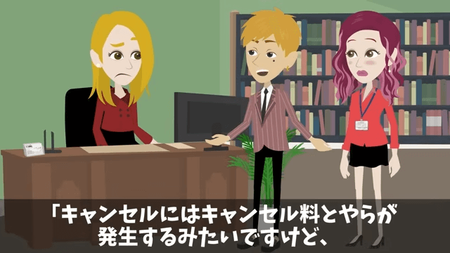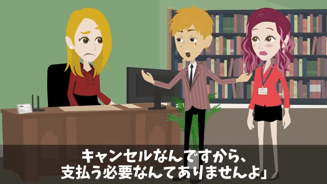 元上司は今回は高級旅館の都合のため、キャンセル料は発生しないだろうと話します。 それに対し社長は「いや、そうじゃなくて、宿泊料金はもう支払っているのよ」と言いました。