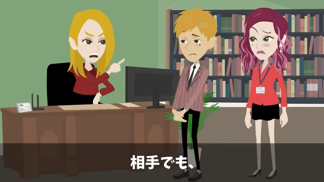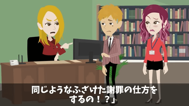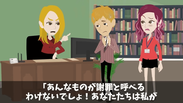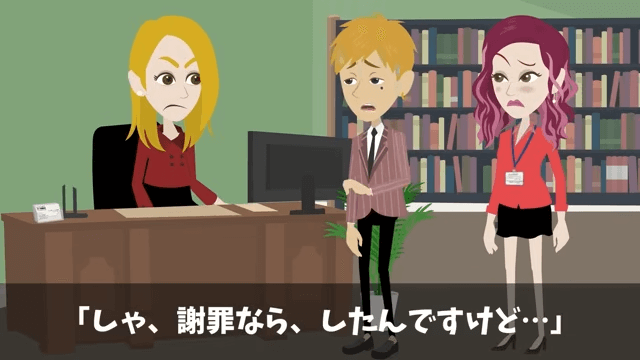 社長は元上司と元同僚に、まずは迷惑をかけた主人公に謝るべきだと言いました。 それを聞いた元上司が「しゃ、謝罪なら、したんですけど…」と言うと、社長は相手が自分でも同じような謝罪をするのかと尋ねて…。
