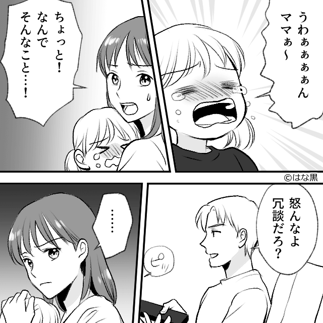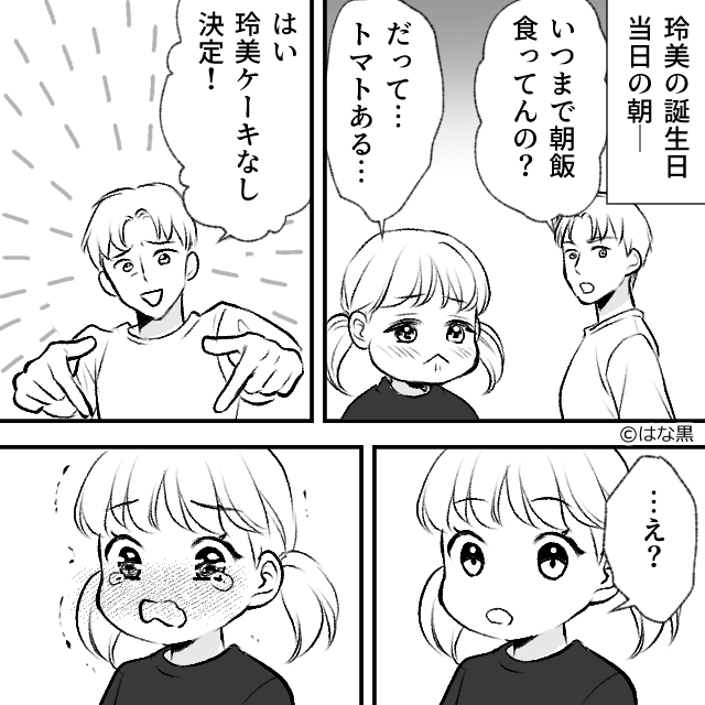 さらに誕生日当日、夫は「はい、ケーキなし決定!」と娘に意地悪を言い、娘を泣かせて知らないふりをするのでした。