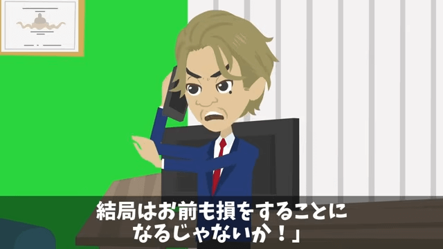 部長は食堂の女性が出資を打ち切れば、結局主人公も損をすることになると話します。 それに対し主人公が「なりませんよ?」と答えると、部長は主人公のことをバカにしてきました。