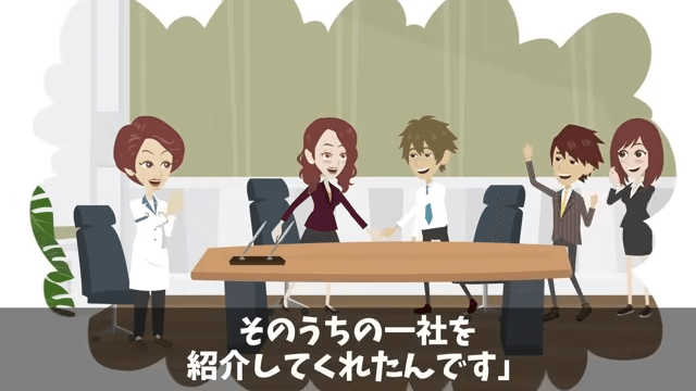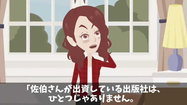 主人公は、食堂の女性が出資している出版社が1つではないことを部長に説明します。 そして、そのうちの1社を転職先として紹介してもらったのだと言いました。