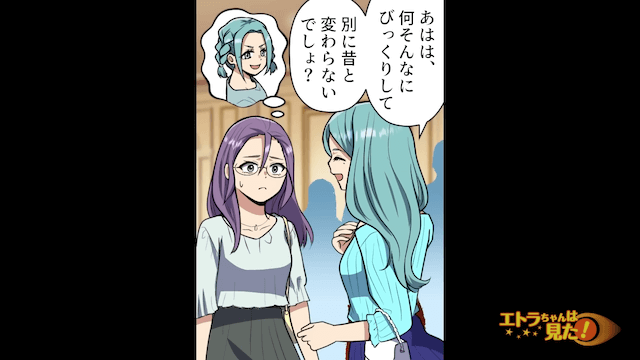 今回は『”芋姫”と呼ばれてバカにされていた中学生時代の同窓会の話』を紹介します。 同窓会の会場に入ると、なぜか周囲から視線を向けられた主人公。 戸惑った主人公は「この服、変だった?」と服装を気にするのでした。
