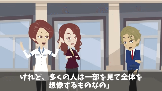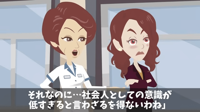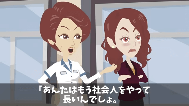 食堂の女性は、部長は会社という組織の一部であることを説明します。 さらに食堂の女性は、社会人としての意識が低すぎると部長に言いました。