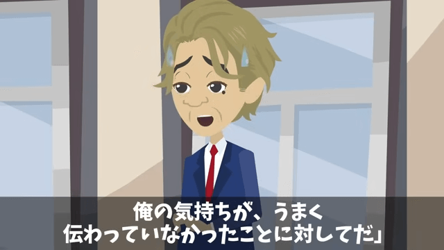 このままではまずいと思った部長は、主人公に謝りました。 それに対し主人公が「何に対する謝罪でしょうか?」と尋ねると、部長は自分の気持ちがうまく伝わらなかったことに対してだと答えます。