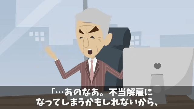 社長からクビを言い渡された部長は「こんなのあんまりだ。不当解雇で訴えますよ!」と言いました。 そこで社長は、不当解雇になるかもしれないと考えてすぐには部長を解雇しなかったと説明します。