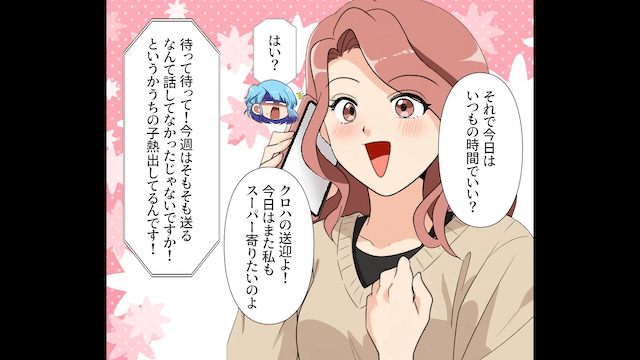 今回は『毎週車で送迎を要求してくるママ友の末路』を紹介します。 書道教室の送迎だけでなくスーパーへの送迎も頼んできた図々しいママ友に、唖然とする主人公。 そして翌週、書道教室の日に息子が熱を出してしまい…。