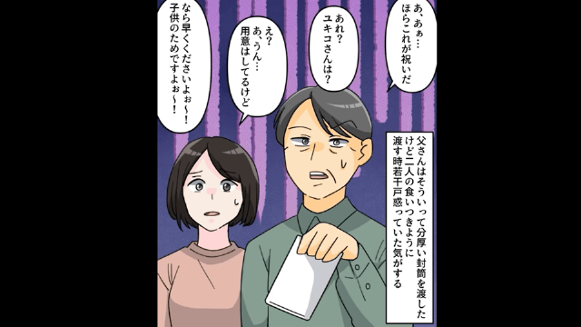 戸惑いつつ渡す父