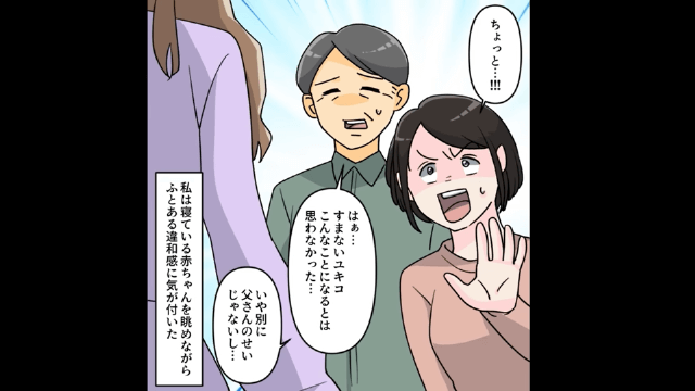 主人公と父からの出産祝いを確認した兄は「めっちゃ入ってるじゃんラッキー!」「これで遊びにいこうぜ」と言い出し、義姉もその計画に賛成していました。 そして兄夫婦は主人公の制止を振り切り、まだ幼い子どもを主人公と父に押しつけ、出かけてしまったのです。