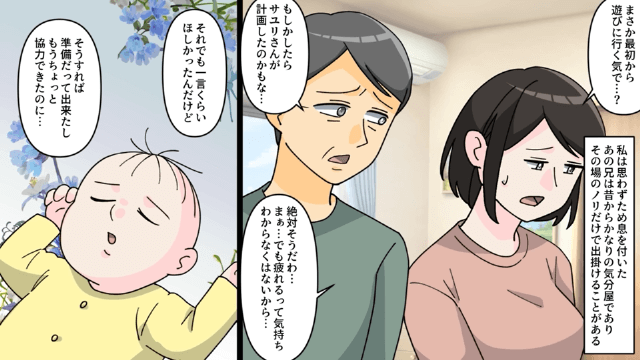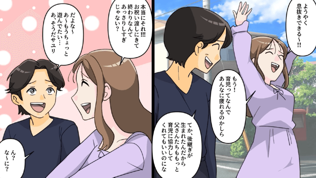 今回は『兄に新婚祝いを渡しにいくと…父「今すぐ逃げるぞ!」私「へ?」』を紹介します。 主人公と父が兄夫婦に出産祝いを渡すと、兄夫婦はその場で金額を確認して「これで遊びにいこうぜ」と言い出しました。 そして主人公は兄夫婦の言動を注意したのですが、兄夫婦はまだ幼い子どもを主人公と父に押しつけ、出かけてしまったのです。