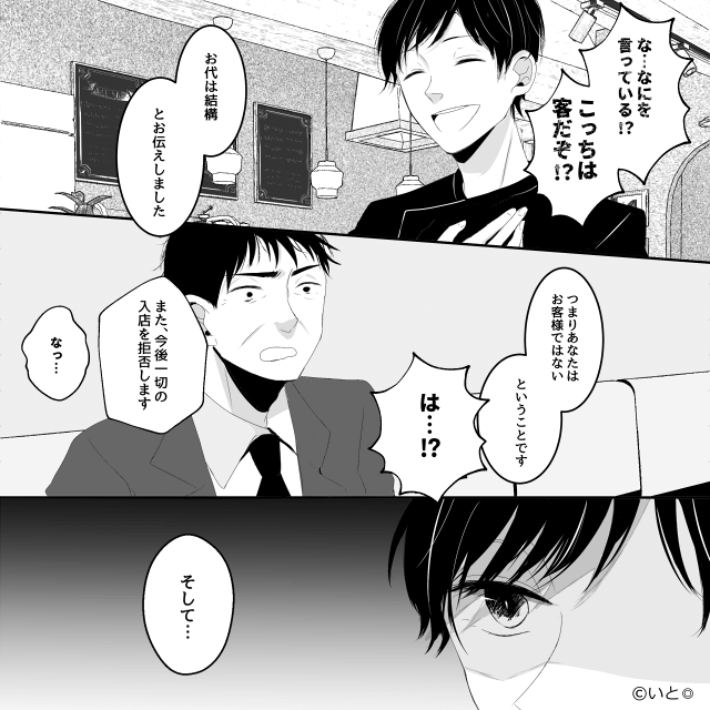 今回は『横柄な客を出禁にしたら、客足が遠のいたワケ』を紹介します。 男性客に言いがかりをつけられた女性店員を、慌てて庇った主人公。 しかし男性客がまったく反省しないため、主人公は「当店はそういった考えの方には合わない店かと」と告げ…。