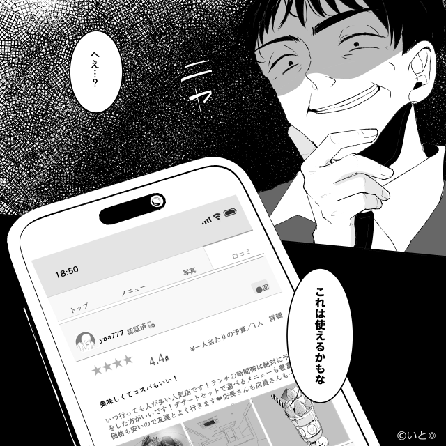 怒り狂いながら帰宅した男性客は、主人公の店に仕返しをしようと考え…。 口コミサイトを見つけ「これは使えるかもな」とつぶやくのでした。