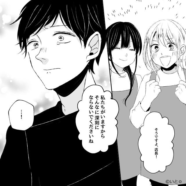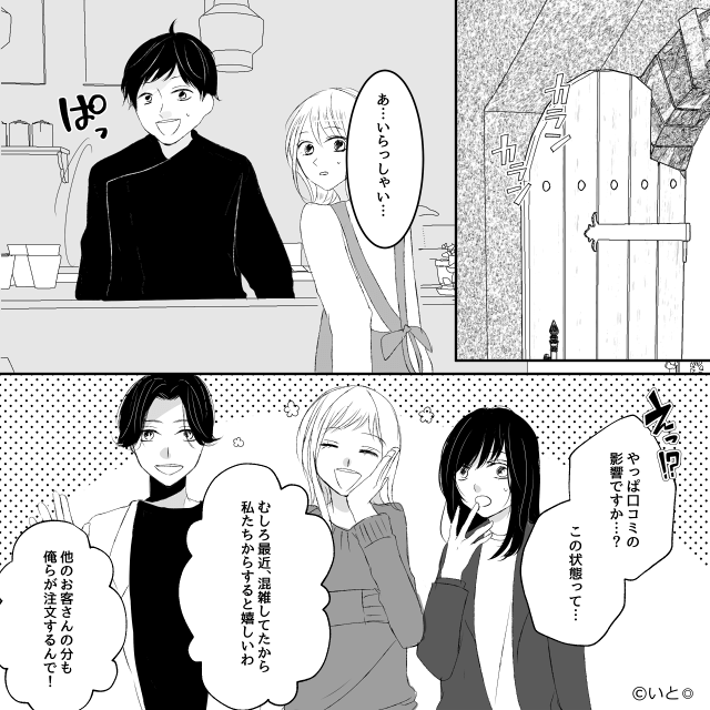 男性客が書き込んだ嘘の悪評が拡散されてしまったことで、店にはお客さんが来なくなります。 しかし常連客は優しく寄り添ってくれて、主人公は励まされるのでした。