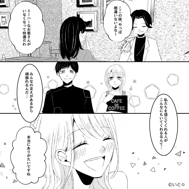 今回は『横柄な客を出禁にしたら、客足が遠のいたワケ』を紹介します。 男性客の嘘の口コミによって、店はガラガラに。 しかし常連客や従業員たちに励まされ、主人公は涙を流すのでした。