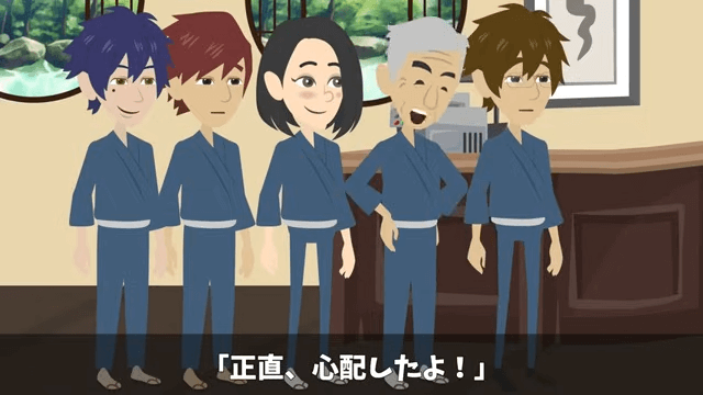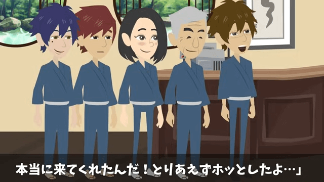 主人公が考え込んでいると、女性スタッフたちが料亭に到着しました。 女性スタッフたちの姿を見た主人公は「とりあえずホッとしたよ…」と胸をなで下ろします。